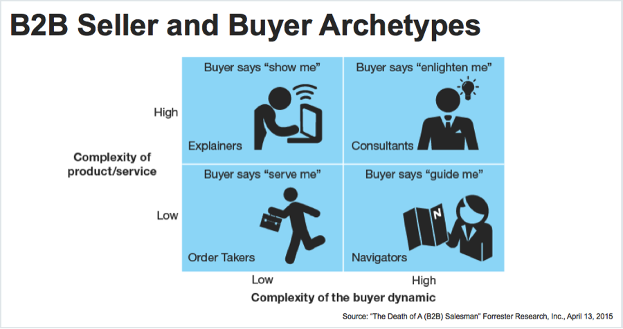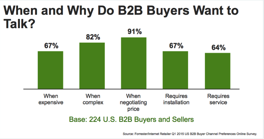According to Forrester’s own research, despite the prevalence of information online, there are times when a buyer wants (and needs) to speak to a sales representative. These are directly related to both pre-sale and post-sales complexity, including pricing and implementation.