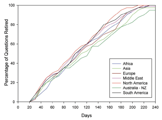 Involving 1470 physicians in 63 countries, this randomized trial sent 40 questions & explanations on clinical practice guidelines over a 34-week period. Adaptive game mechanics re-sent the questions in 12 or 24 days if answered incorrectly and correctly, respectively. Questions expired if not answered on time (appointment dynamic). Physicians retired questions by answering each correctly twice-in-a-row (progression dynamic). Competition was fostered by posting of relative performance among physicians on leaderboards. This was new educational content for the majority of the participants. Even though there were significant regional variations in baseline performance on the questions, physicians from all regions were able to demonstrate similar mastery of this new content by the end of the program.